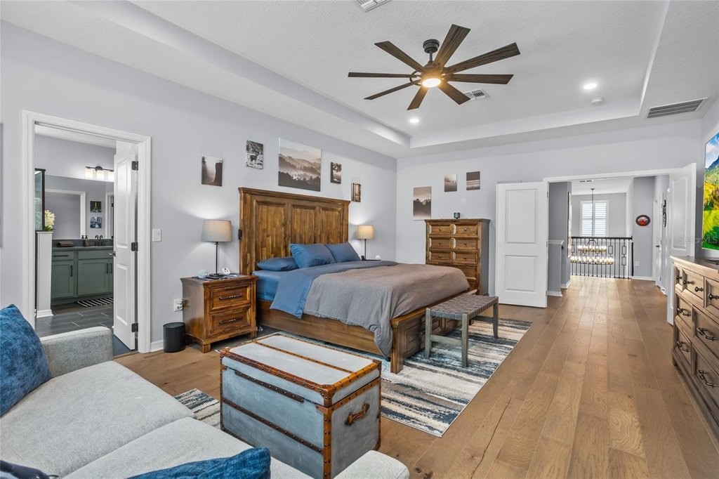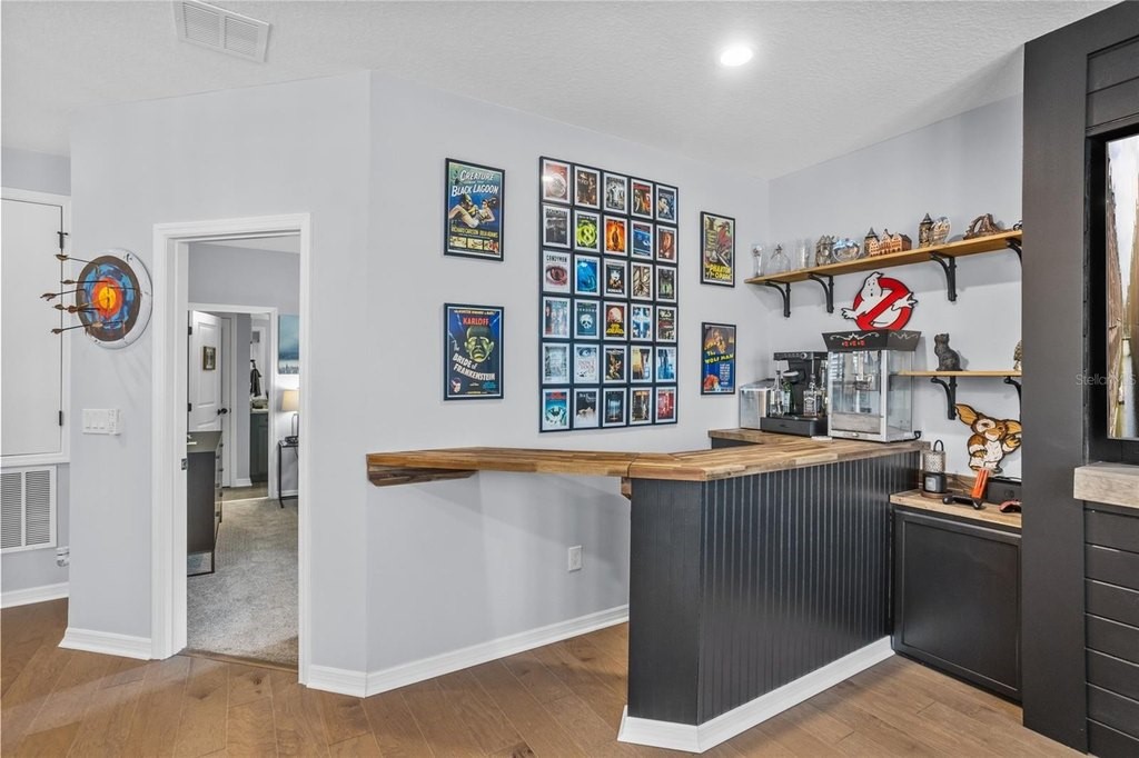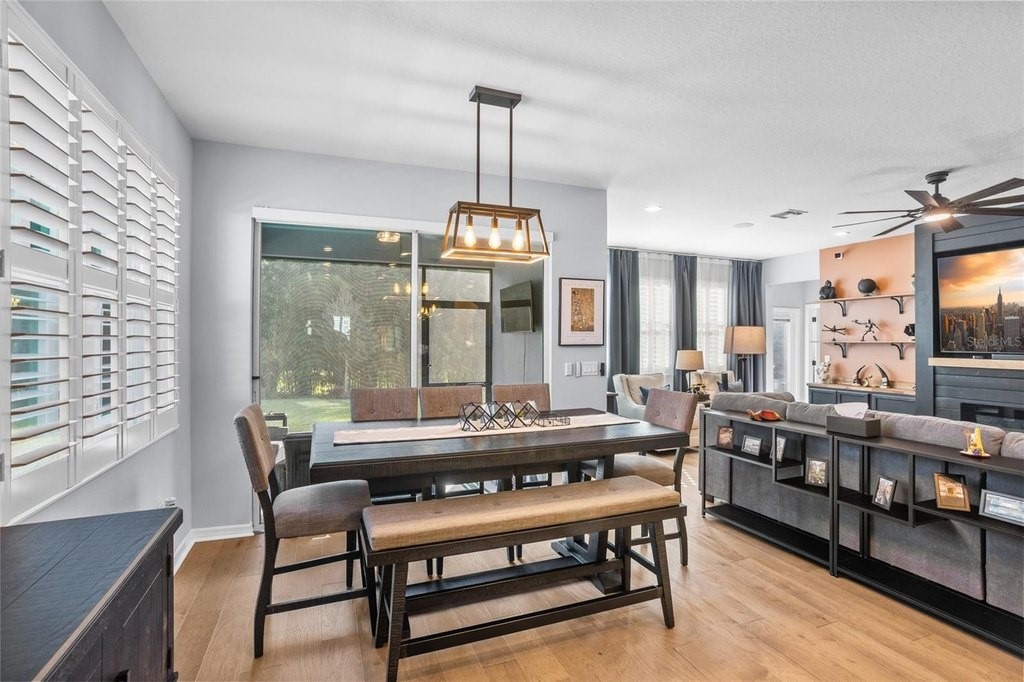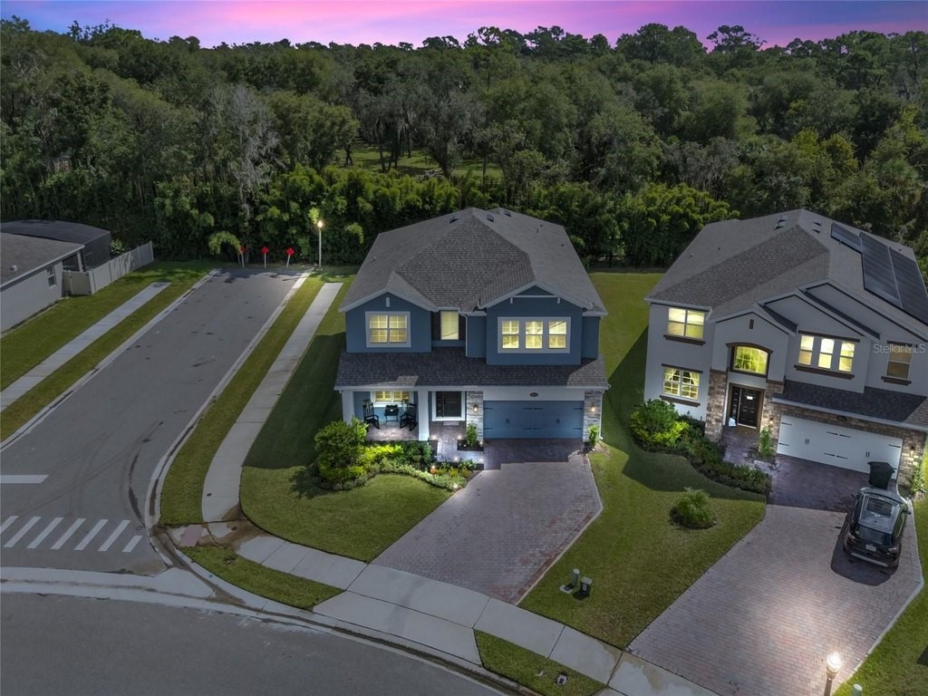 Welcome to 5615 Green Arrow Place in Sanford a stunning 5 bedroom, 4 full bath home loaded with upgrades and thoughtful details throughout! Step inside to discover a one-of-a-kind chefs kitchen featuring upgraded quartz countertops with beveled edges, a double oven, premium range hood with spice rack and utensil hangers, real wood 42 cabinets with soft-close drawers, specialty spice and silverware drawers, custom pull-out pot and pan racks, and a butlers pantry with microwave and mini fridge. The elegance continues with premium REAL Engineered Wood flooring, upgraded LED smart lighting, plantation shutters, electric roller blinds, and a built-in ceiling sound system in multiple rooms. Entertain with ease in the living room and loft, each designed with custom built-ins, fireplaces, and included 86 LG TVs. The luxurious owners suite offers quartz countertops, dual vanity sinks, dual shower heads, and an upgraded electric toilet with heated bidet, motion sense, auto flush, and heated dryer. A private guest suite with full bath and tub provides comfort and convenience for visitors. Throughout the home, youll find thoughtful enhancements such as premium wood and iron staircase banisters, custom laundry with premium tile, cabinetry and shelving, built-in fridge enclosure with upgraded LG refrigerator that makes cocktail ice, and pre-installed permanent holiday lights approved by the HOA. Even the garage and exterior were upgraded with care, offering an EV outlet, epoxy garage flooring, hanging shelving in the third bay, and an extended driveway. The premium corner lot provides a rare side street with no rear neighbors, just peaceful bamboo views. From smart upgrades to elegant finishes, this home truly has it all, blending luxury, comfort, and functionality in every detail.